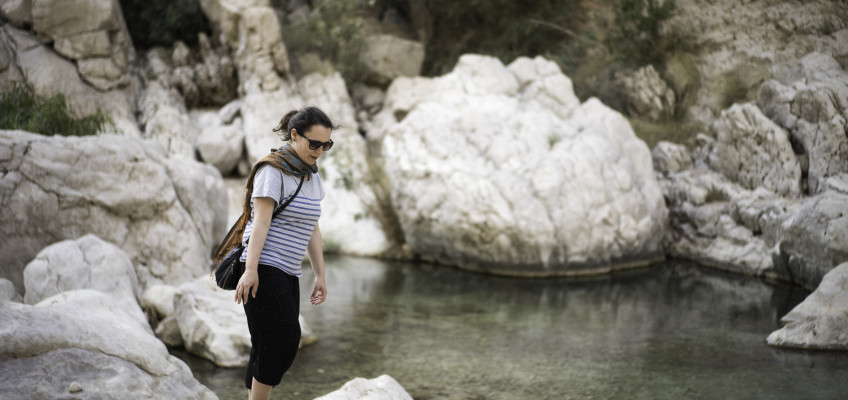 Mit dem Auto geht es weiter Richtung Osten nach Sur aber nicht ohne in der Zwischenzeit ein paar Wadis anzuschauen. Wadis sind mehr oder weniger ausgetrocknete Flussbetten (je nach Wetterlage versteht sich) die demzufolge auch kleine Oasen bilden und die gibt es hier zur Genüge. Nach einer Übernachtung in Sur geht es weiter nach Raz al-Hadd, hier trifft der Golf von Oman auf das Arabische Meer und während man so steht und guckt fliegen 3 Pelikane vorbei und man fragt sich, wo die wohl hinwollen. Weiter entlang der Ostküste suchen wir uns einen leeren Strand, denn wir schlafen im Auto um vor Sonnenaufgang Schildkröten zu suchen, mehr dazu gibt es hier. Dieser Teil der Küste gilt als eine der schönsten Abschnitte mit seinen steilen Klippen. Wir können aber nur einen Teil davon genießen, denn uns zieht es weiter ins Landesinnere in Richtung Ibra. Auf dem Weg dahin machen wir am Wadi Bani Khalid halt, in meinen Augen das schönste Wadi was ich im Oman gesehen habe, denn in den künstlichen Pools kann man baden und auf unserem Weg in die kleine Muqhal-Höhle, kühlen wir uns die Füße ab. Dieses Wadi führt das ganze Jahr über Wasser und ist genau das, was man sich unter einer Oase vorstellt.