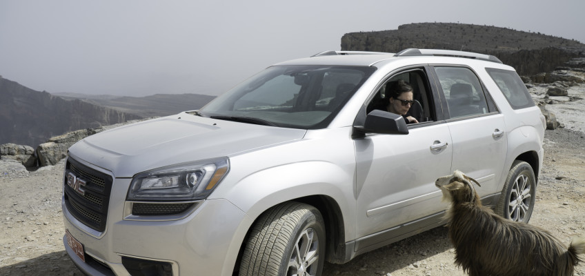 Arabisch für Einsteiger oder die bereits Gesättigten, das liest man öfter über den Oman. Ich persönlich hatte eine Tausendundeine Nacht Vorstellung: Dattelpalmen, Kamele in der Wüste und weiße Gewänder und genau das wird einem auch begegnen. Nebenbei gibt es große asphaltierte Straßen und jede Menge dicke Autos. Wir mieten uns auch ein dickes Auto (Europcar sagte „it´s only a GMC… ) und bewegen uns in der einen Woche größtenteils durch den Nordosten des Landes, denn der Rest ist bedeckt von einer riesigen 15.000km² großen Sandwüste.