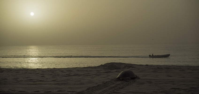 Diese Nacht hielt aber noch andere Überraschungen für uns bereit. Um 04:30 finden wir uns in Raz al-Jinz ein, der Strand ist ein geschütztes Brutgebiet für die Grüne Meeresschildkrote (auch Suppenschildkröte genannt). In Begleitung darf man hier Schildkröten beobachten. Interessanterweise kehren Schildkröten zur Eiablage immer an den Strand zurück, an dem sie geschlüpt sind, obwohl sie oftmals tausende Kilometer zurücklegen um z.B. Nahrung zu finden. Es kann sein, dass eine Schildkröte die im Oman geschlüpt ist bis nach Afrika oder Indien schwimmt. Wenn Sie aber mit ca. 30 Jahren die Geschlechtsreife erreicht, wird sie wieder zurück an die Strände des Oman zurückkommen.