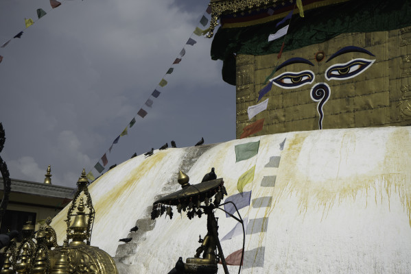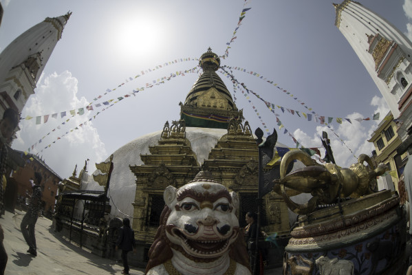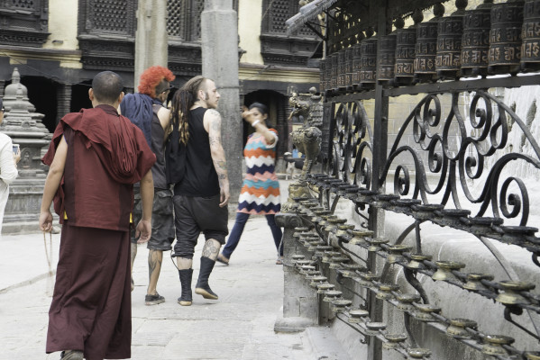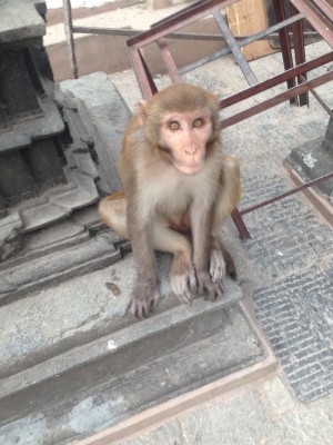 Wir verbringen die ersten Tage damit durch Thamel zu schlendern, die Route zu planen und auf Viktor zu warten. Danach gibt es ein bisschen Sightseeing. Wir klettern rauf auf die Swayambhunath, ein hinduistisch, buddhistischer Tempelkomplex, der von einer buddhistischen Stupa gekrönt ist. Er gilt als eine der ältesten Tempelanlagen der Welt und die vielen Stufen nach oben kann man einfach als kleines Höhentraining betrachten. Viktor macht seine ersten Begegnungen mit hinterlistigen Affen und ich bin fasziniert von den Mönchen und dem tollen Ausblick. Außerdem stelle ich wieder einmal fest, dass es sehr schön ist ab und an seine Freunde um sich zu haben und Viktor bleibt uns sogar noch ein paar Woche erhalten.
